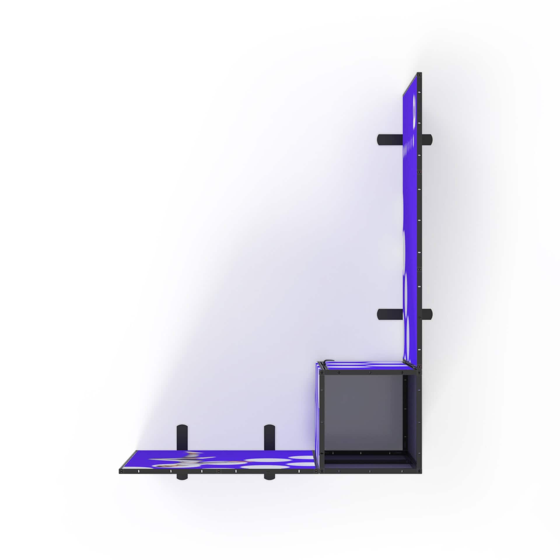 Deze uitvoering is leverbaar in 250 cm, 300 cm en 350 cm hoogte, telkens inclusief geïntegreerde pantry. Een hogere stand vergroot uw zichtbaarheid op drukke beursvloeren. De pantry biedt praktische opbergruimte of een afgesloten werkplek, zodat uw team efficiënt kan werken tijdens beursdagen.